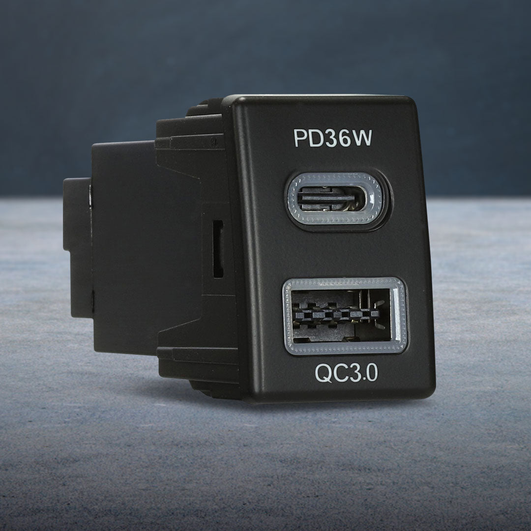 Featuring both USB-C Power Delivery (36W) and USB-A Quick Charge 3.0 ports, this charger handles everything from the latest smartphones to tablets and older devices simultaneously. The subtle blue LED illumination ensures you can find your charging ports day or night, while the clip-in design means professional installation without any permanent vehicle modifications.