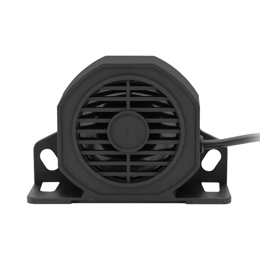 The AXIS BA102DM is a professional-grade dual mode backup alarm designed to enhance worker and pedestrian safety during vehicle and machinery reversing operations across industrial, commercial, and construction environments. The unique dual-mode functionality allows operators or fleet managers to select between traditional beep tone (1.2kHz frequency) ideal for general commercial applications, or broadband squawk/white noise ideal for residential areas, noise-sensitive environments, or locations where directional sound localization is critical for worker safety. Traditional beep alarms can blend into ambient noise or cause noise pollution complaints in residential areas, while broadband white noise provides easier sound source localization allowing pedestrians to quickly identify the reversing vehicle's direction and distance. The exceptional 12-80V operating voltage range eliminates the need for multiple alarm models across mixed fleets operating different electrical systems - the same alarm works on 12V light commercial vehicles, 24V heavy trucks and buses, 48V mining equipment, and industrial machinery up to 80V, simplifying fleet parts inventory and reducing procurement complexity. The 102dB sound output ensures audible warnings across noisy industrial environments including construction sites with operating machinery, mining operations with crushing equipment, and warehouses with forklifts and conveyor systems. The IP67 rating provides complete dust protection and waterproof performance during high-pressure washing, submersion during creek crossings, and continuous exposure to rain, mud, and industrial fluids. The nylon-epoxy encapsulated housing withstands impacts from loading docks, dropped materials, and vehicle collisions while resisting chemical degradation from fuels, oils, hydraulic fluids, and cleaning solvents commonly encountered in industrial operations.