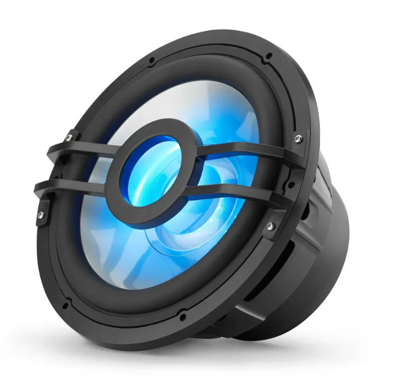 Achieve powerful impactful bass performance with customizable lighting using Clarion CMSP-101RGB-4 10" Marine Subwoofer—featuring robust 10-inch driver diameter delivering deep authoritative bass reproduction with excellent low-frequency capability extending musical fundamentals and cinematic impact, innovative built-in RGB LED lighting system creating customizable ambient illumination enhancing nighttime aesthetics and vessel atmosphere, substantial 250W RMS continuous power handling ideally matched to Clarion subwoofer amplifiers accommodating high-output bass amplification for demanding applications, 4-ohm impedance providing flexible amplifier compatibility and optimal power transfer efficiency, specialized infinite baffle design optimized for installations without dedicated enclosure behind speaker enabling mounting in bulkheads, cabin walls, under seats, or deck locations where sealed/ported enclosures impractical, long-excursion motor structure with high power handling design delivering low-distortion bass reproduction maintaining clarity and impact even at maximum output levels, premium marine-grade construction featuring Salt and Sun Certified materials withstanding continuous exposure to saltwater spray, UV radiation, moisture, and extreme temperature fluctuations, expertly crafted from premium materials meeting rigorous quality standards ensuring long-term reliability in harsh marine environments, sold individually without grille enabling flexible installation configurations and grille selection based on specific mounting location aesthetics, also available in 2-ohm version (CMSP-101RGB-2) providing amplifier matching flexibility for different system configurations, grille sold separately allowing customization based on installation requirements and aesthetic preferences, infinite baffle mounting capability eliminating need for bulky subwoofer enclosures saving valuable vessel space, RGB LED customization enabling color selection matching vessel lighting schemes or mood preferences creating cohesive entertainment atmosphere, high-quality budget-friendly pricing delivering premium performance without excessive cost, long-excursion design accommodating significant cone travel producing powerful bass impact with minimal distortion, optimized for marine environment with materials resisting corrosion and environmental degradation, ideal pairing with Clarion marine amplifiers for matched system performance, and proven Clarion marine audio engineering delivering professional-grade marine subwoofer solution for recreational boats, fishing vessels, luxury yacht installations, wakeboard boats, and commercial marine applications requiring powerful bass reproduction with customizable RGB LED lighting in space-efficient infinite baffle configurations.