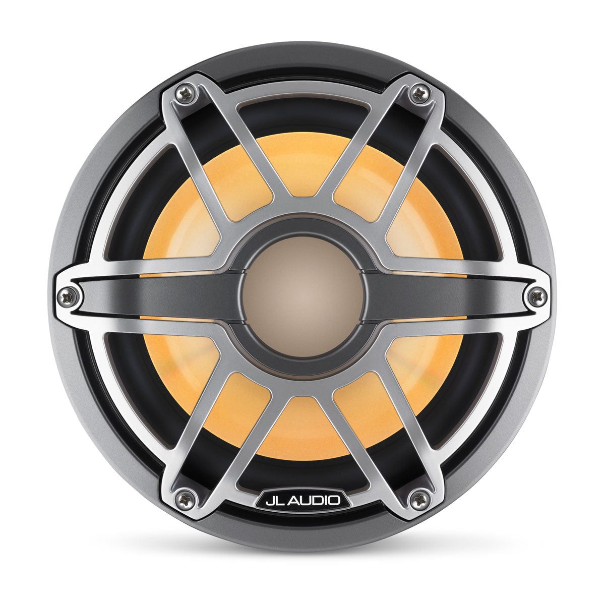 Premium Titanium Sport Grille: Sophisticated metallic titanium finish combines aggressive sport styling with corrosion-resistant construction, offering distinctive aesthetic presence ideal for luxury yachts, performance vessels, and premium recreational craft requiring upscale visual impact matching titanium M6 speaker and subwoofer installations.
