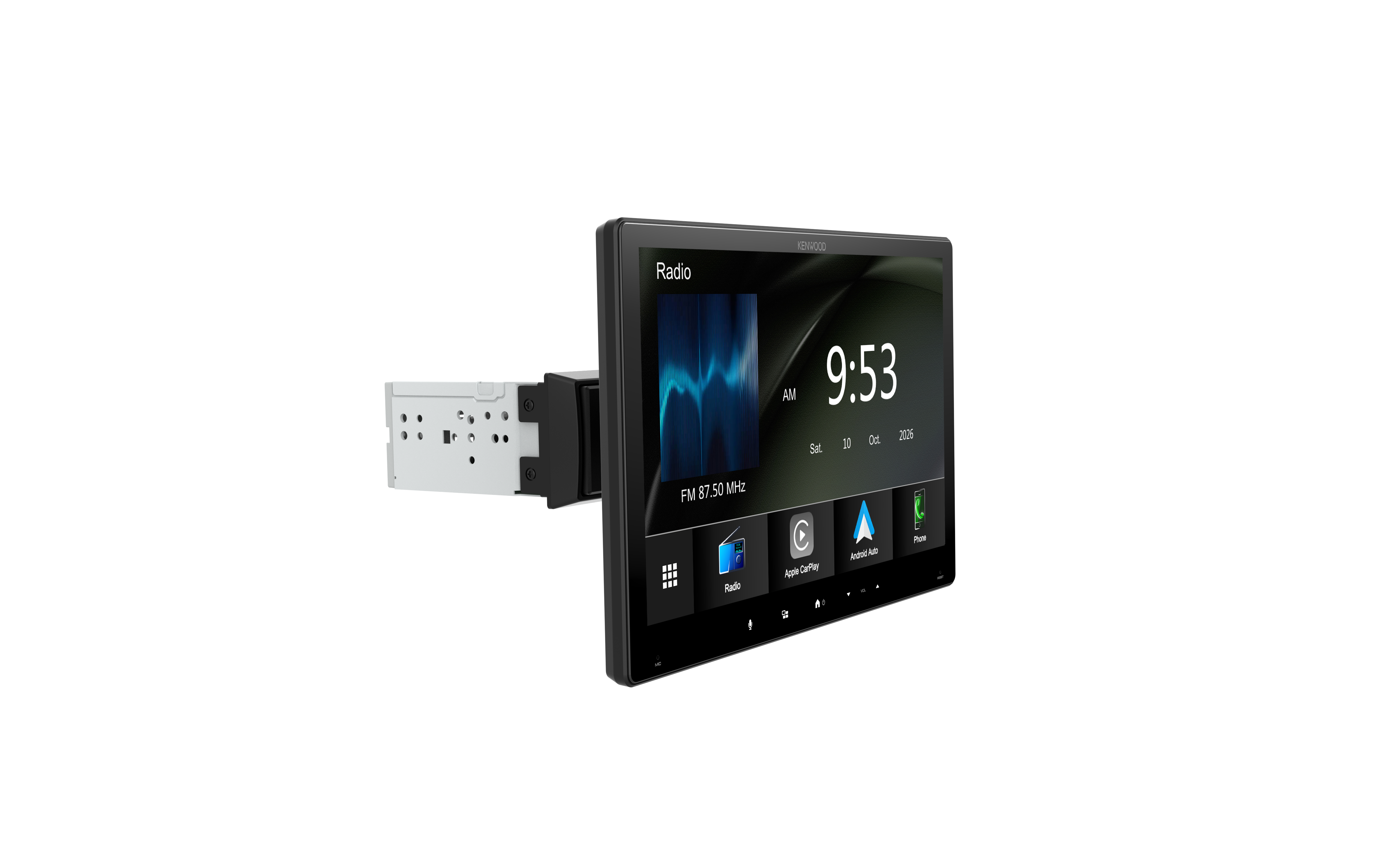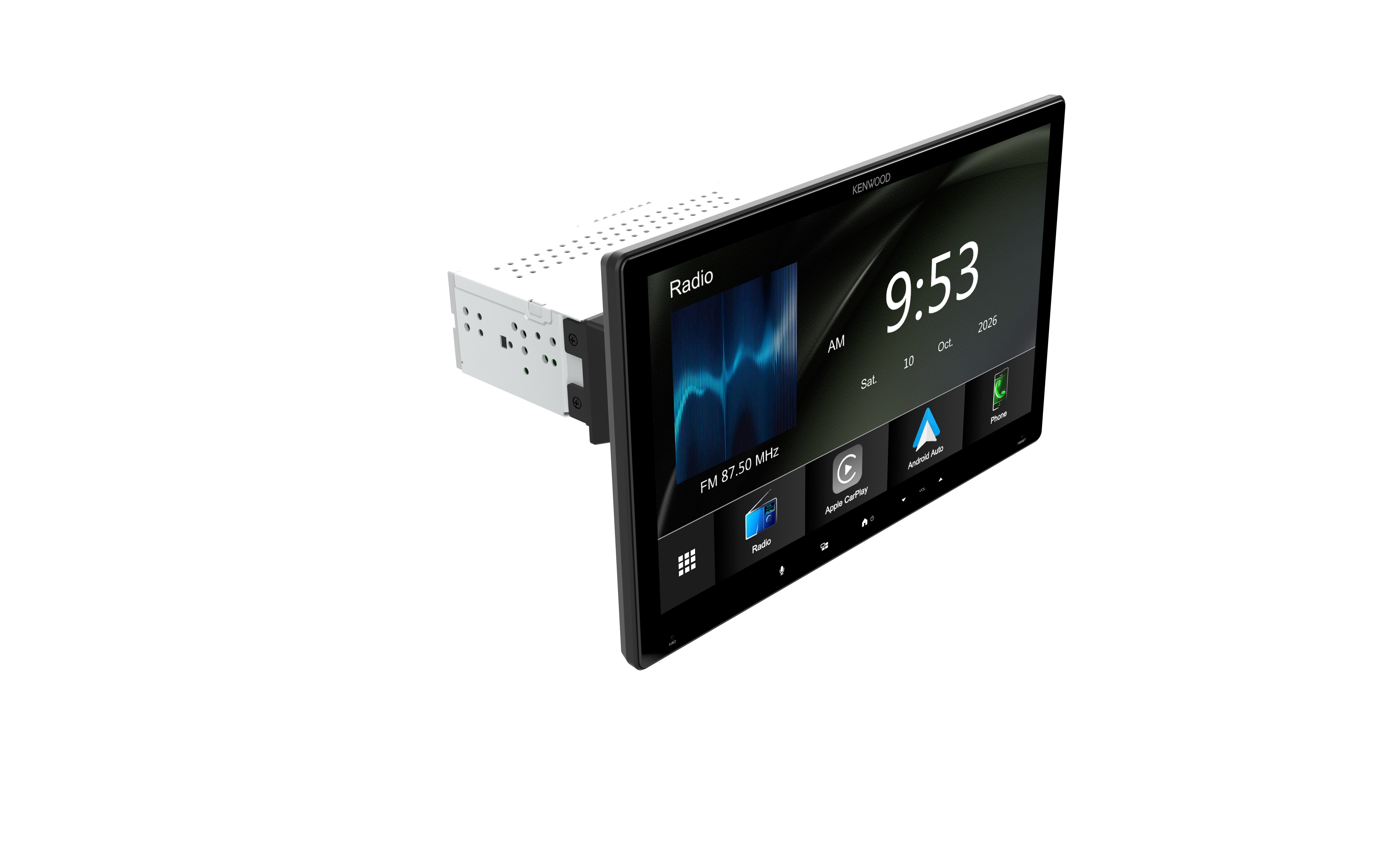 The KENWOOD DMX7412XDS delivers a bold new viewing experience with its massive 11.6-inch HD floating capacitive display, creating a powerful centrepiece for modern in-car entertainment systems seeking large-format clarity and style. This advanced AV receiver features comprehensive smartphone integration supporting both wireless and wired Apple CarPlay and Android Auto connectivity for seamless access to navigation, music streaming, hands-free calling, and messaging applications. The flexible ball mount floating design provides adjustable screen positioning to optimize viewing angles across various dashboard configurations, while the compact 1DIN chassis with 75mm mounting depth enables installation in vehicles where traditional double DIN units cannot fit. Advanced audio capabilities include integrated DAB+ digital radio tuner for crystal-clear broadcast reception, 10-band equalizer for precise sound customization, direct steering wheel remote compatibility, and 3 pre-outs for external amplifier connections. Practical features include rear USB port with 2-amp charging capability for passenger device power, USB and smartphone audio streaming, two camera inputs for comprehensive parking assistance, and iDatalink Maestro ready compatibility for maintaining factory vehicle functions. The capacitive touchscreen delivers responsive control with smartphone-like interface responsiveness for enhanced visibility and reduced driver distraction during operation.