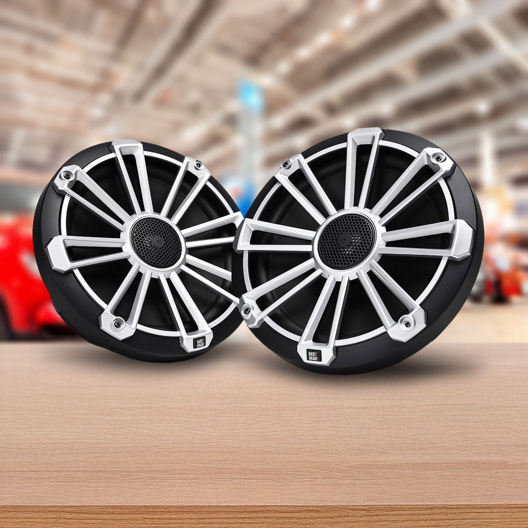Premium Marine Audio – MB Quart 8″ 2-Way Nautic Coaxial Speakers with Interchangeable Colored Grilles!