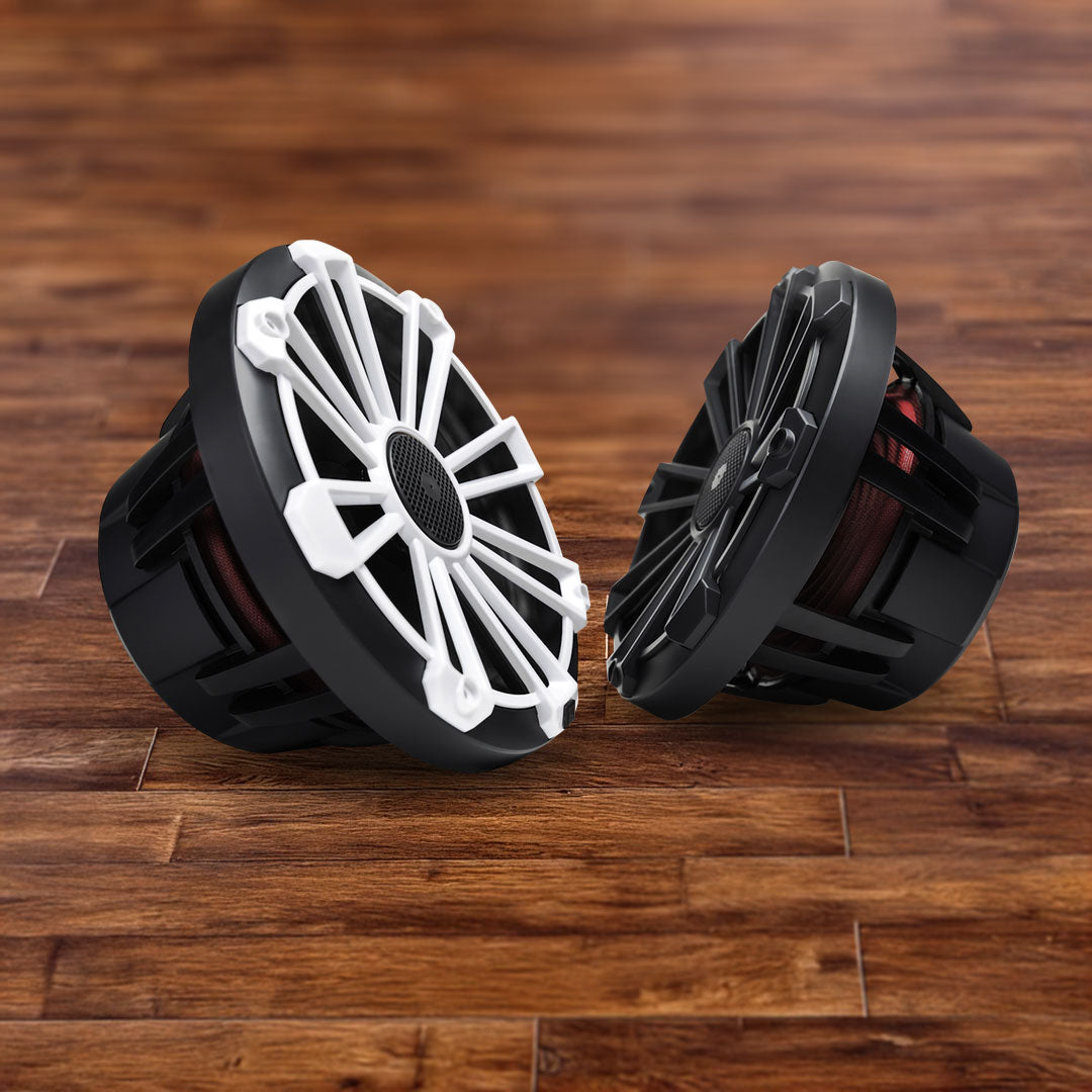 8″ 2-way coaxial Nautic Premium speaker system with interchangeable coloured grilles.