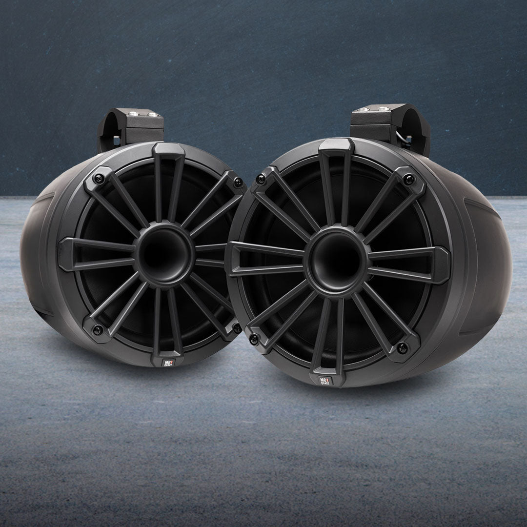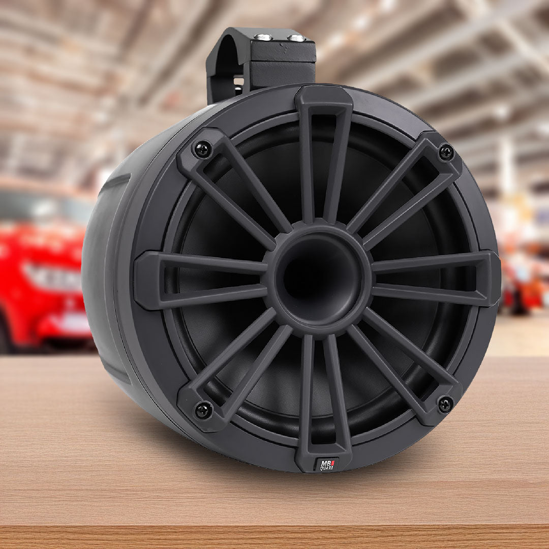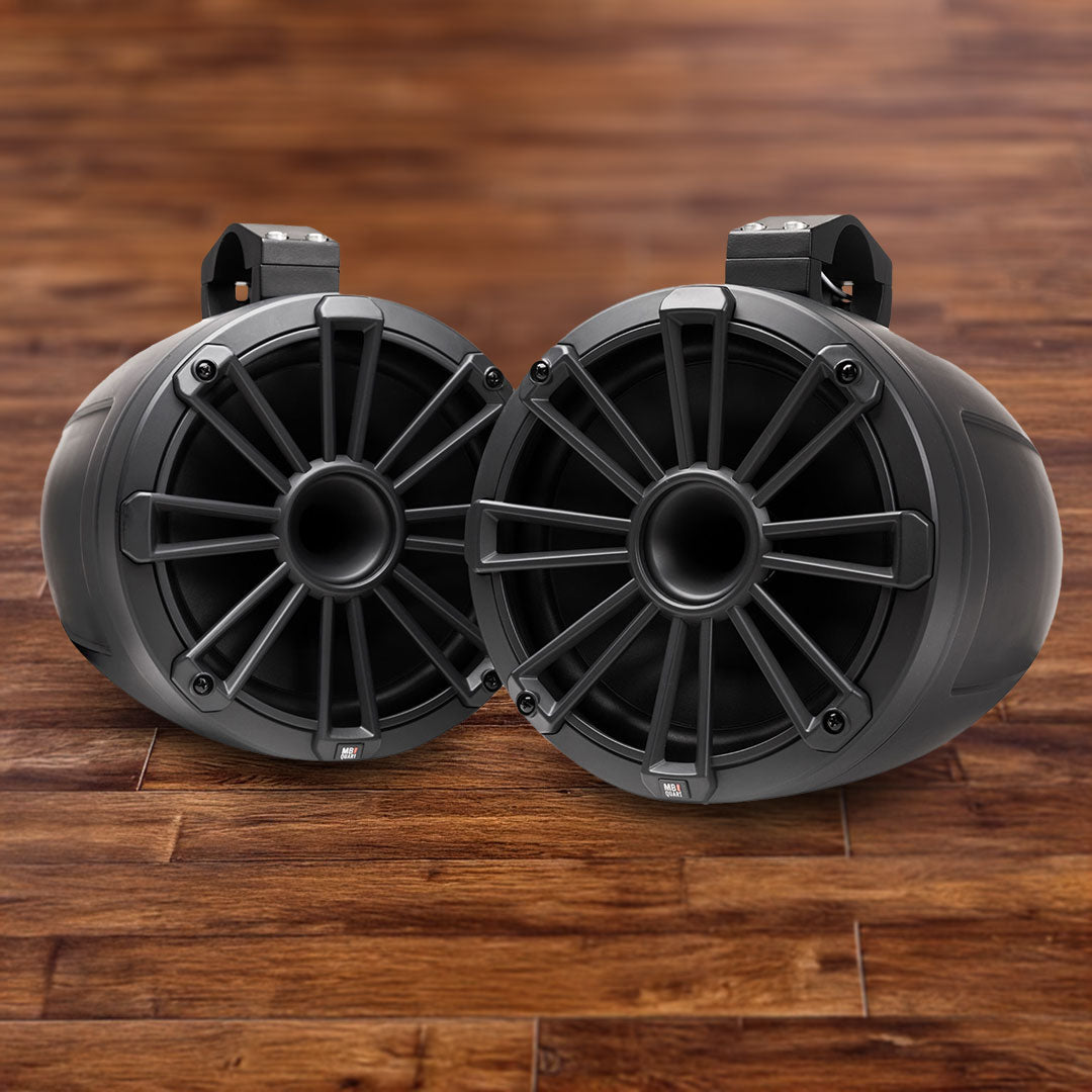 Marine-Grade Power & Precision – MB Quart 8″ Horn-Loaded Coaxial Wake Tower Speakers with Interchangeable Grilles & Mounting Clamps!