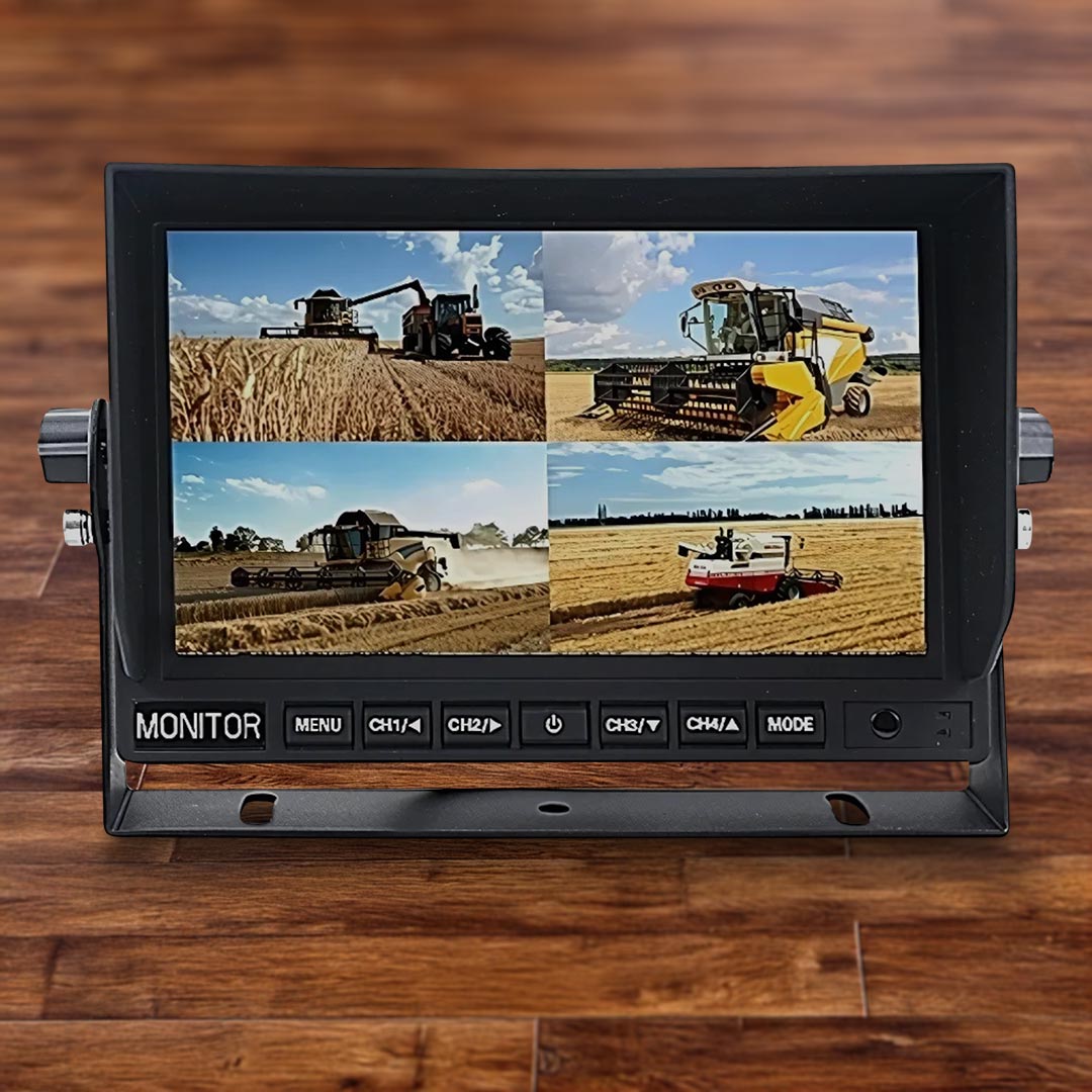 Perfect for applications requiring multiple viewing angles - such as reversing camera, forward camera, left and right side cameras - the MQ94A offers flexible viewing options from single camera full-screen display to all 4 cameras at once. The large 9" screen ensures clear visibility of all camera feeds, making it ideal for commercial operators who need to monitor equipment, surroundings, and safety zones.